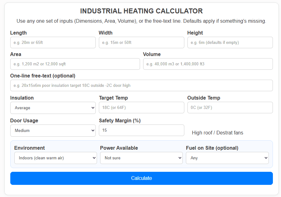 Choosing the right industrial heater is not always straightforward. Every workspace, whether it’s a warehouse, workshop, logistics bay, agricultural shed or construction site, has unique heating requirements. Selecting a heater that is too small leads to cold, uncomfortable working conditions and higher running costs as the system struggles to keep up. Oversizing, however, creates its own inefficiencies: the heater will cycle on and off more frequently, wasting fuel and reducing lifespan. To avoid both extremes, accurate heater sizing is an essential part of planning a safe, efficient and productive work environment.