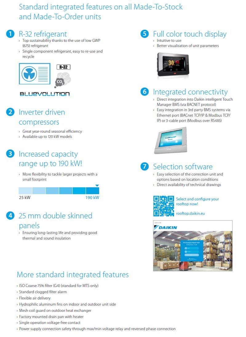 - Latest pCO5 controller allows direct integration with Daikin BMS, or third party BMS via BACnet or Modbus
