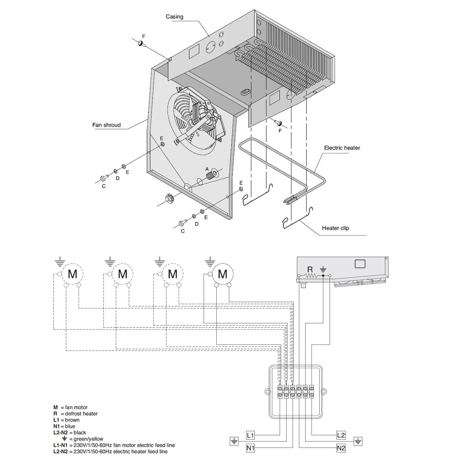 The Mobine Eco compact indoor unit range is a high grade european manufactured cooler coil which has been designed for installation in low temp reach-in cabinets, display cases and small cold rooms. This range is for lower temperatures (≥ –25 °c) and have dual fin spacing, high quality coils made from special profile aluminium fins with inner grooved copper tube for high efficiency and better heat transfer making them suitable for the new generation of refrigerants. The pre-installed fan motors are single-phase 230V/1/50-60Hz, have tough fibreglass charged polyamide polymer fan guard and comes with a iP42 protection grade. This cooler coil evaporator product is designed to operate at temperatures of –40 to +40 °c and as standard comes with pre-installed electric defrost stainless steel heaters, internal drip tray, vulcanised power terminals within the junction box (iP54 rated) with space for extra wiring connections. A full range of spares available (see pdf data sheet).