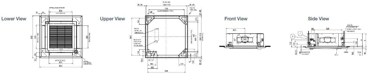 The Mitsubishi Electric air conditioning Mr Slim power inverter air conditioning system's sCoP (Coefficient of Performance) is up to 4.9 on some models. This means the system can deliver 4.9 kW of heating, whilst consuming only 1.0kW of electrical power. This has been achieved by combining advanced Mitsubishi Electric air conditioning inverter technology with R32 refrigerant. The cassette design has improved air flow-pattern through the unit, and the new design of the high performance indoor heat exchanger, have resulted in a pressure loss reduction, allowing the fan design to be optimised for significantly lower sound Db levels. The air discharge louver has been modified to minimise air smudging on the ceiling adjacent to the air outlets.
