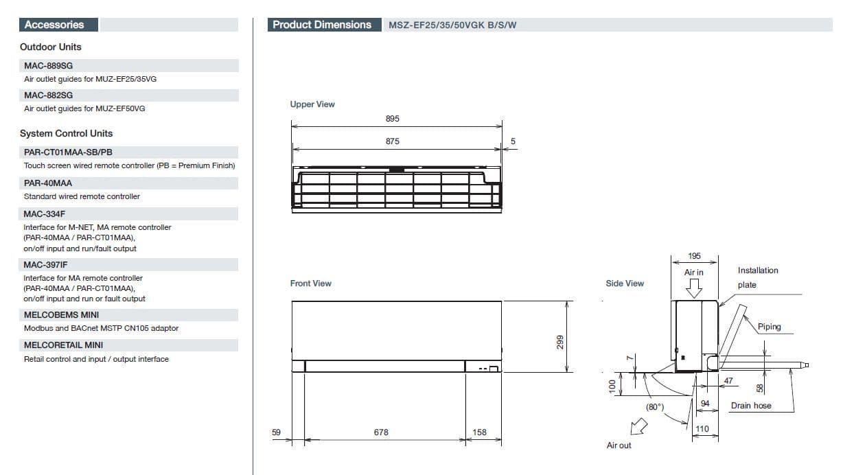 1 x MSZ-EF18VGK B/S/W Zen indoor unit with built in wi-fi
