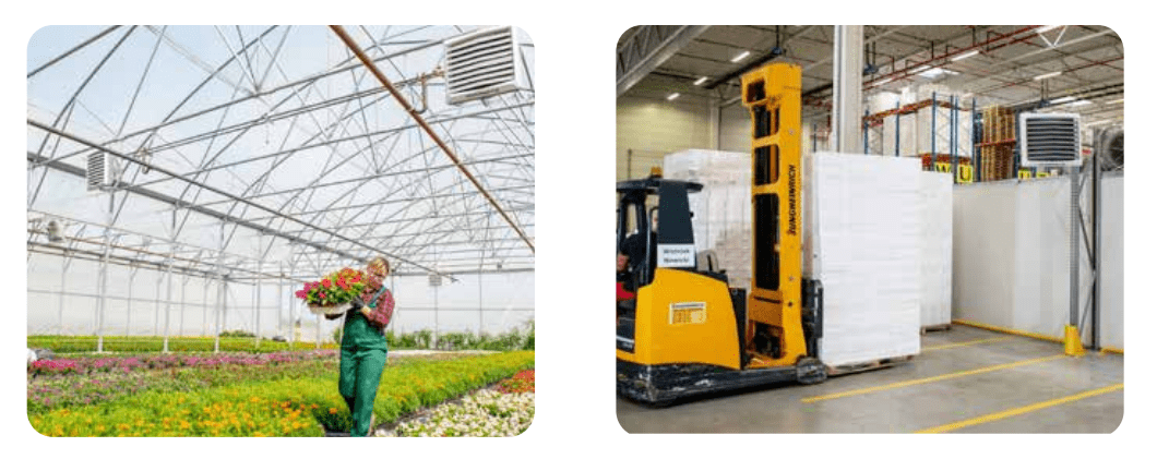 • Even heat distribution for larger industrial spaces