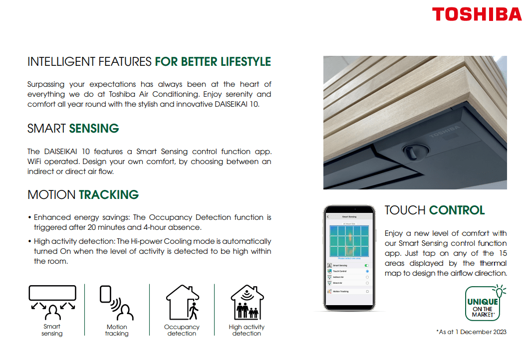 The Toshiba DAISEIKAI 10 Wood 2.5kW is a beautifully engineered high-wall heat pump system that combines exceptional energy efficiency with a unique natural wood-finish aesthetic. Designed for high-end residential environments, studios and contemporary interiors, the DAISEIKAI 10 Wood elevates comfort and décor simultaneously — offering one of the quietest and most efficient premium wall-mounted systems available today.